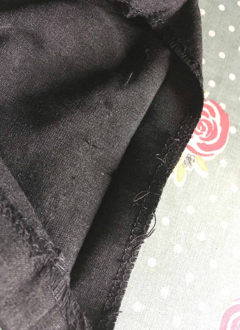 Now the important bit – don’t skimp on the sewing!  Follow up with a line of running stitch sewn all round the edge of the patch, or at the very least down each vertical side of the patch in a closely matching thread colour to the garment..  Turn the trousers to the right side and clip away any long threads from the front of the actual tear and if there are any loose fabric flaps, iron them down and then make a few small running stitches over them to secure.  Once the garment is ironed from the top side, the stitching should barely show and will ensure your patch stays in place permanently through washing, tumble drying and the antics of the playground.