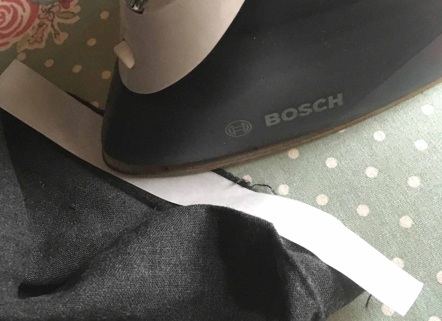 Skirt and trouser hems often come loose, and adhesive sheet can be cut up to create hemming strips slightly narrower than the skirt turnup. Apply a strip of adhesive sheet glue side down to the inside (short edge) of the hem and iron into position.  Allow to cool, then peel off the backing paper, turn the hem up again and smooth it against the skirt fabric so there are no puckers. Iron into position from the back and front and allow to cool, and voila, your repair is complete.  *If working with a pleated skirt you’ll need to ensure you apply the adhesive to  the ironed flat fabric and then re-iron the bottom of the pleat folds.