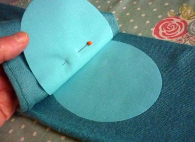 The pictures below show elbow patches applied to the outside of the garment, but if you want to reinforce from the inside,simply turn the garment inside out before proceeding.