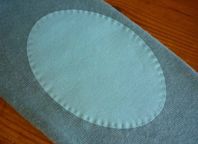 Last but definitely not least, invest a few minutes in giving your patches extra stability by hand-sewing a line of running stitch around the edge as pictured below. This will make your repair much more durable and able to withstand heavy duty wear and washing that school clothing receives.