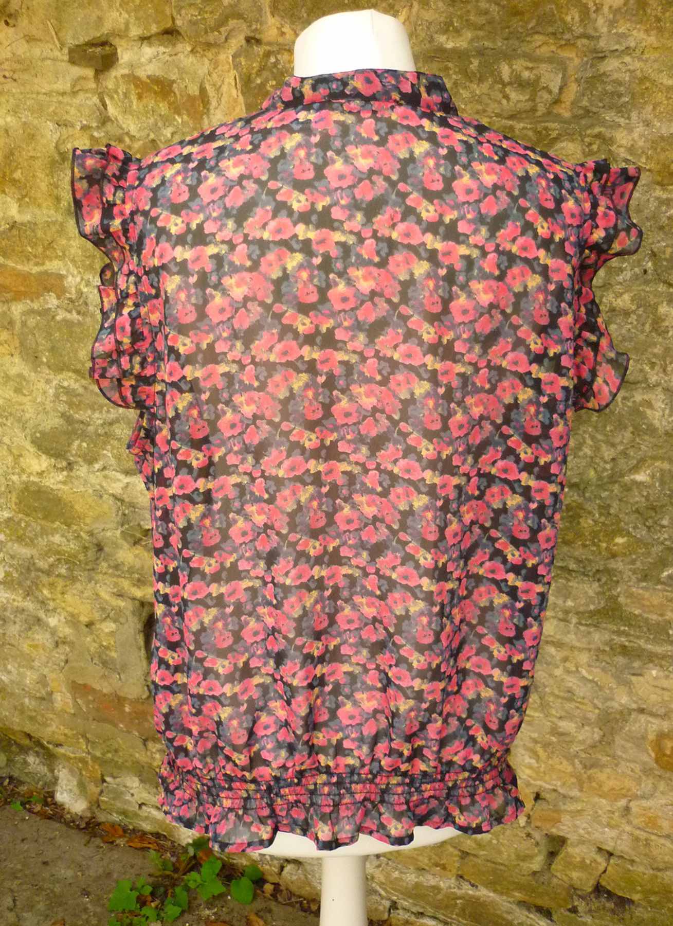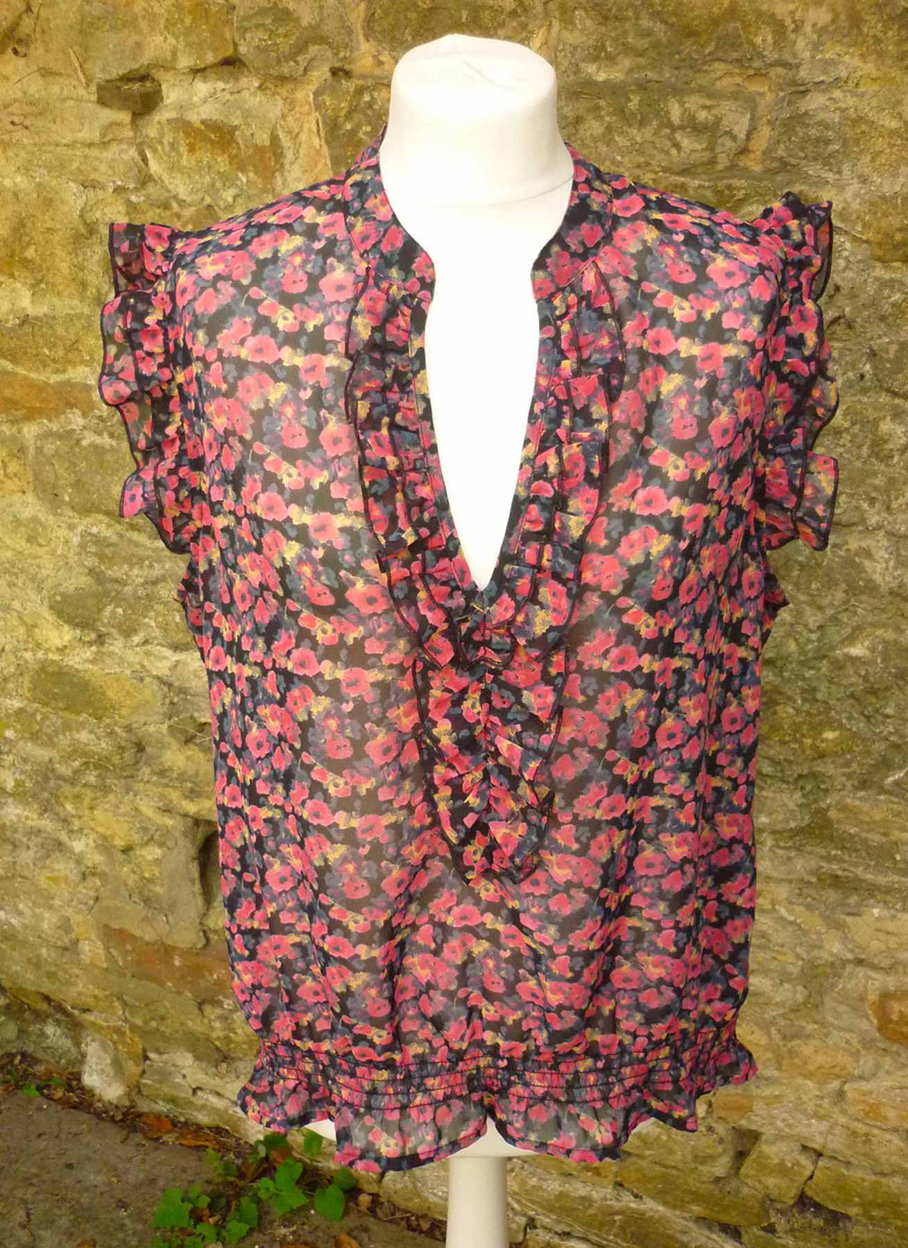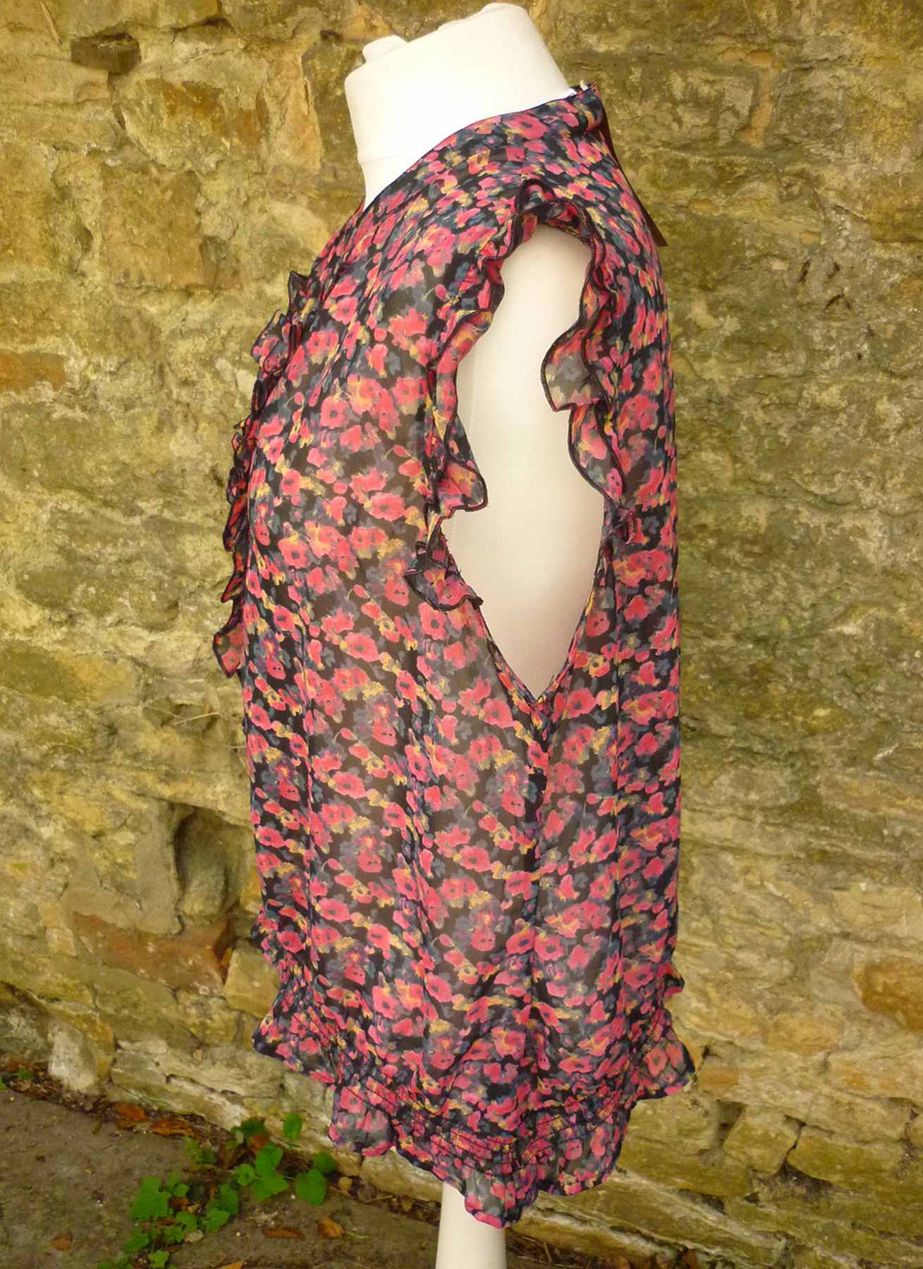 Black Pink Floral Chiffon Sleeveless Top La Redoute Ruffle Front UK18 (46)