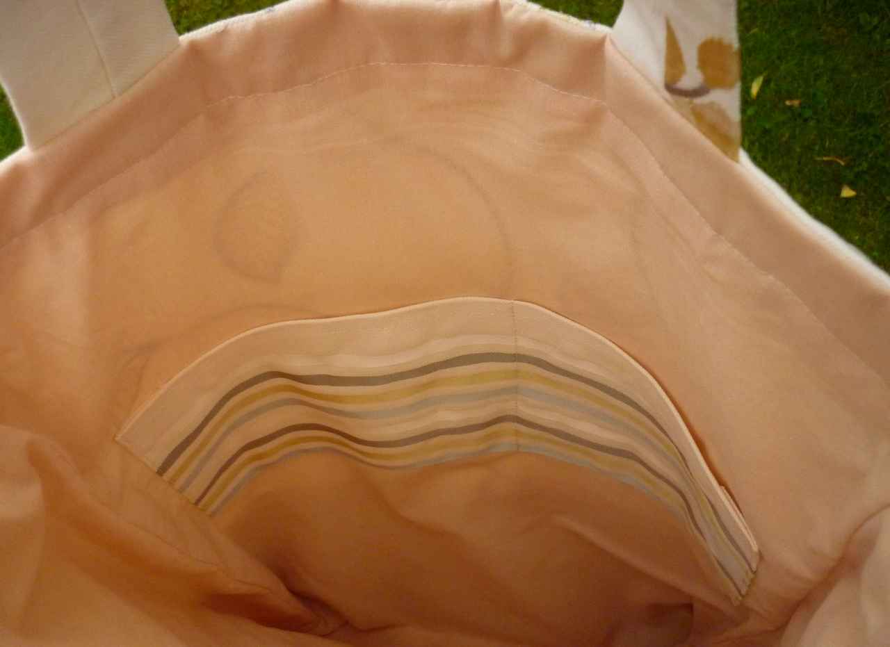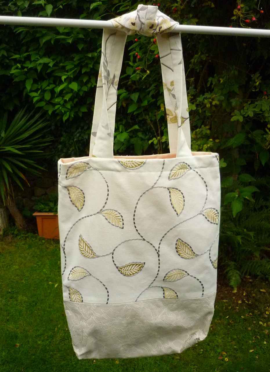 Cream and Yellow environmentally friendly tote bag upcycled from fabric reclaimed from an upholstery sample book.