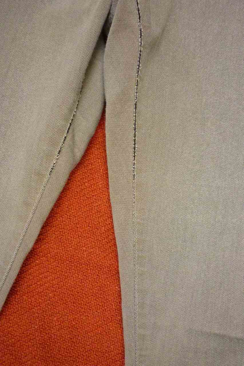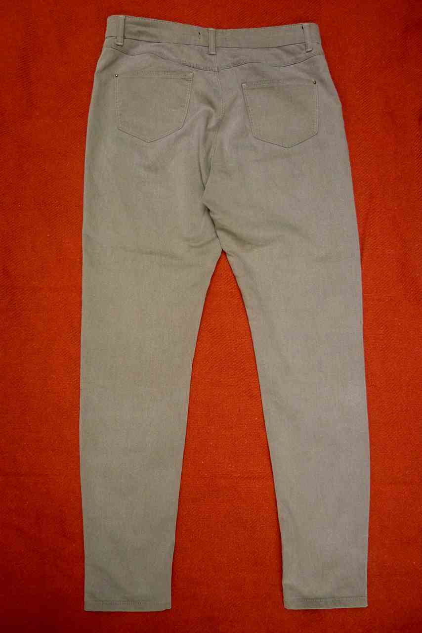 Features: Classic three pocket front and two pocket back styling. Comfortable cotton blend stretch fabric. A little wear to the top of innner leg seams, not really visible when worn. The item is priced accordingly.