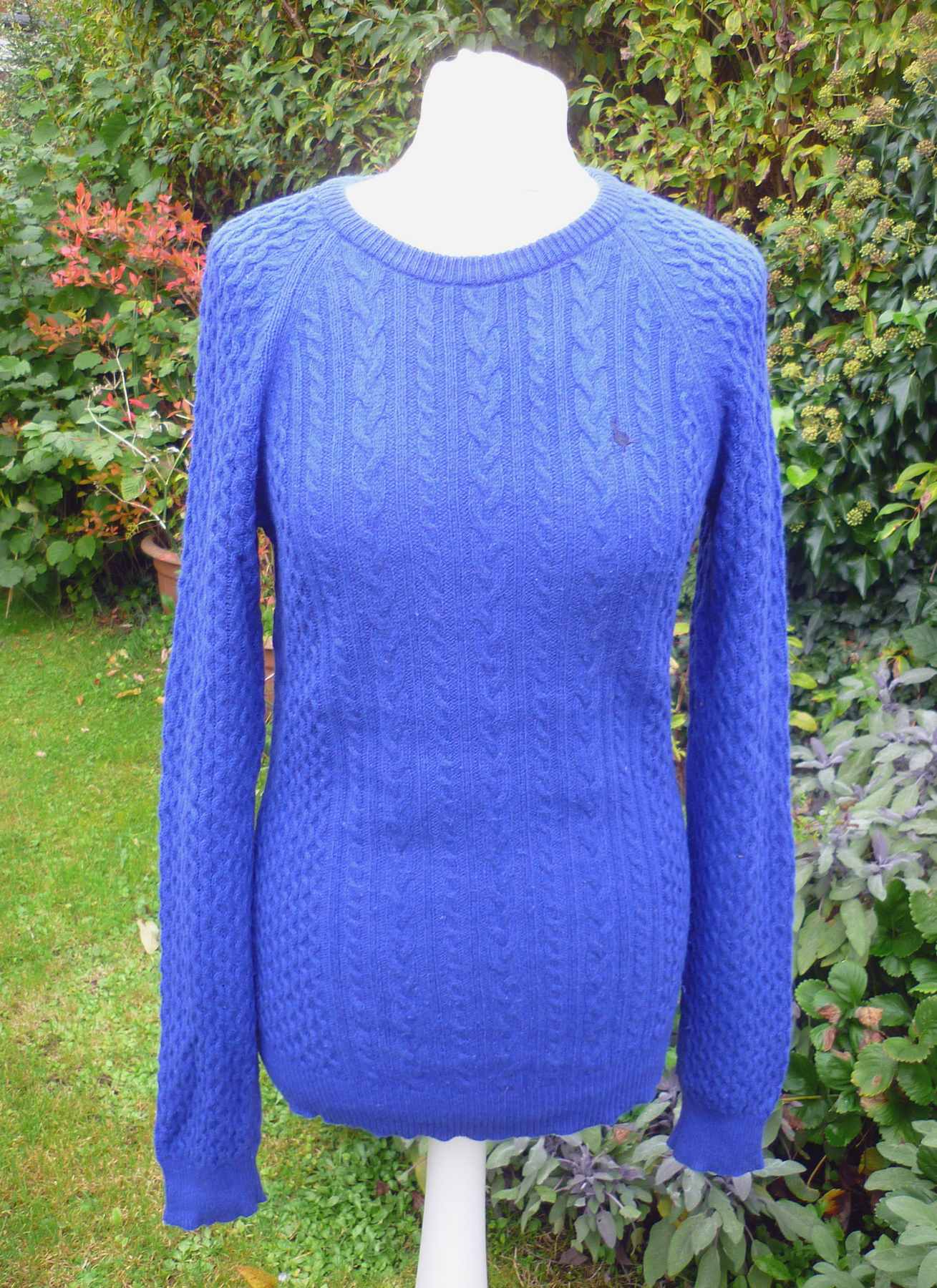 Light Navy / Royal Blue JACK WILLS Traditional Cable Pattern Jumper with Round Neck Size UK12