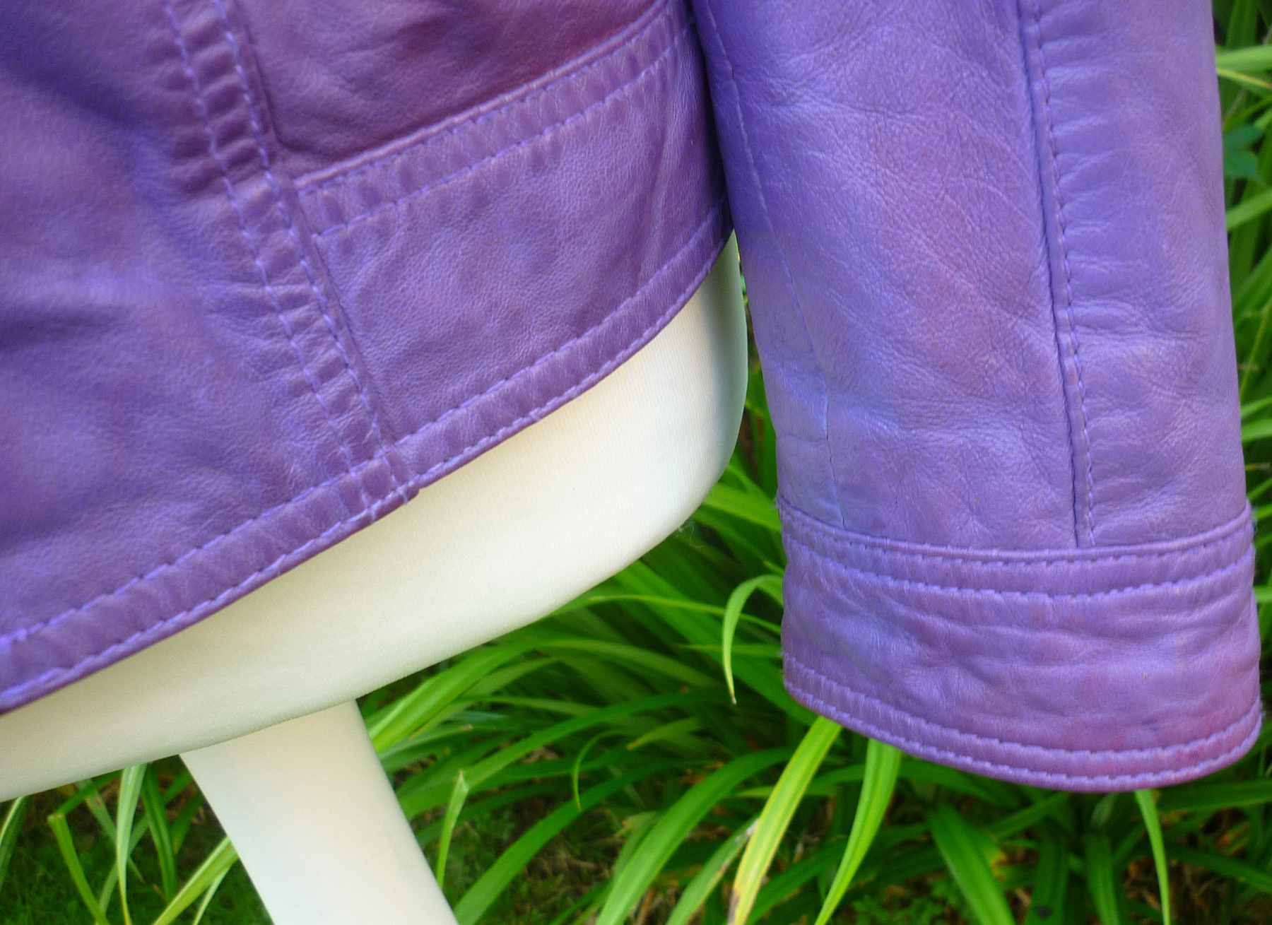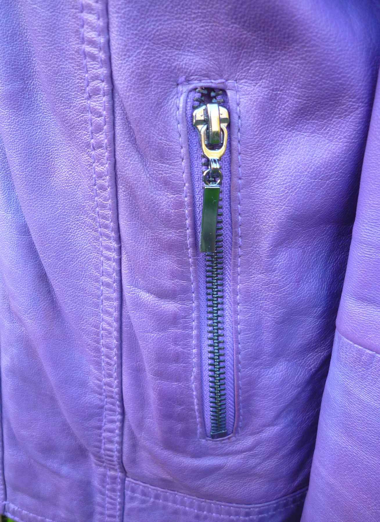 Purple Real Leather Biker Style Jacket by MANGUUN (German brand) in Soft Nappa / Lambskin Hide. Estimated size UK14-16 (40-42″).