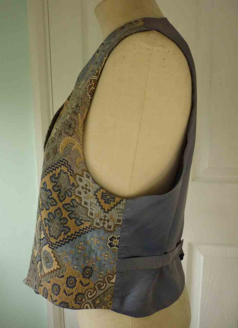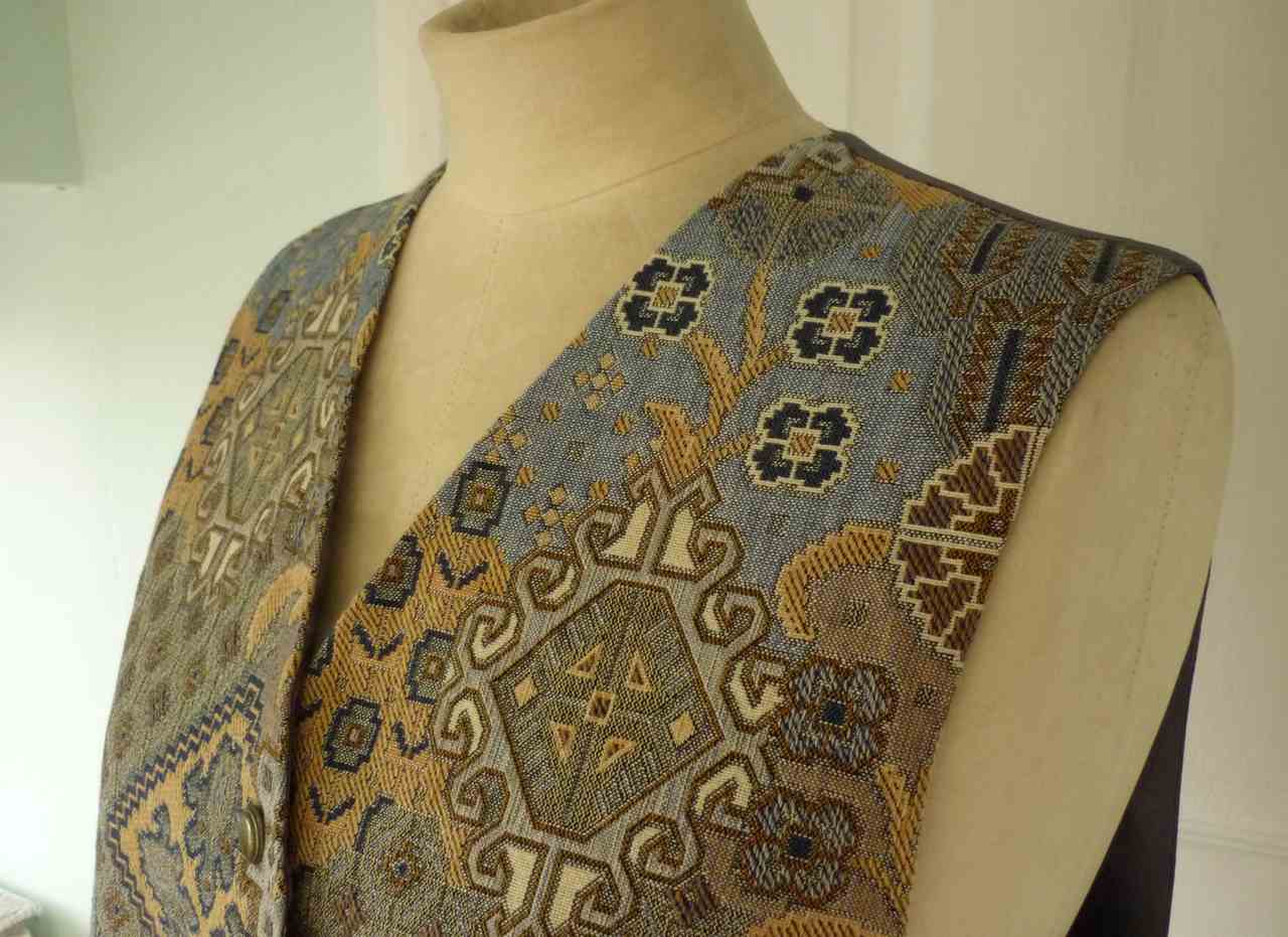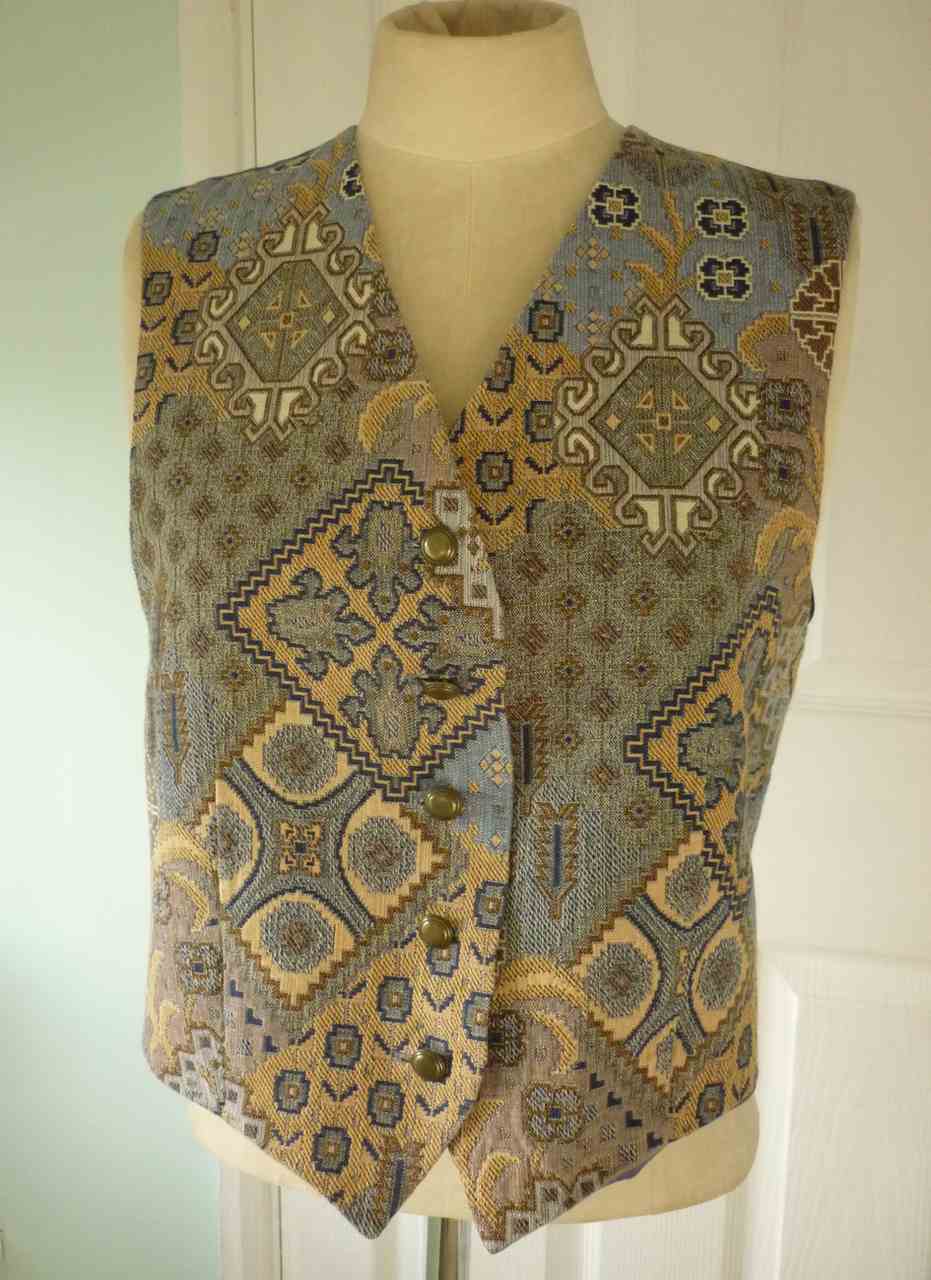 Vintage Blue and Beige Tapestry Fronted Waistcoat by MARKS & SPENCER ‘St Michael’, circa 1980/s